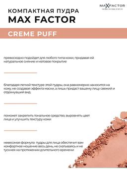 Характеристики Цвет: №40 CREAMY IVORY Объем: 14gr Описание Классическая компактная пудра, которую можно также использовать в качестве тональной основы, создаёт превосходное матовое покрытие благодаря формуле, абсорбирующей секрецию сальных желёз. Теперь пудра поставляется с двусторонним спонжем для быстрого и идеального нанесения. Идеально подходит для всех типов кожи и придаёт безупречный вид и лёгкое сияние благодаря входящим в состав светоотражающим частицам. Creme Puff — это универсальная, многофункциональная компактная пудра для любого случая. Способ применения Нанесите пудру на чистую кожу лица или поверх основы для макияжа с помощью круглой кисти или спонжа. Начинайте наносить с центра лба, двигаясь вниз по скулам до подбородка. Пройдите легонько по носу и щекам.