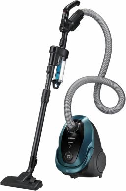 Samsung VC20M2540JN — это мощный и удобный мешковой пылесос, который сочетает высокую производительность, эффективную систему фильтрации и продуманную эргономику. Модель в стильном зеленом цвете станет надежным помощником для быстрой и тщательной уборки дома. С мощностью 2000 Вт (2 кВт) пылесос демонстрирует отличную производительность, эффективно справляясь с различными видами загрязнений. Устройство обеспечивает мощное всасывание (около 460 Вт), что позволяет быстро и качественно очищать как твердые напольные покрытия, так и ковры от крупного мусора и мелкой пыли. На корпусе пылесоса расположен удобный поворотный регулятор, позволяющий настроить мощность всасывания в широком диапазоне в зависимости от типа поверхности и степени загрязнения. Для сбора мусора используется сменный мешок (пылесборник) объемом 2.5 литра, который легко заменяется и обеспечивает гигиеничное удаление пыли. Пылесос может быть совместим с внешним циклонным фильтром, устанавливаемым на ручке (приобретается отдельно или идет в комплекте с некоторыми модификациями). Этот фильтр предварительно собирает крупные частицы, продлевая срок службы мешка и сохраняя мощность всасывания. Труба для всасывания имеет телескопическую конструкцию, позволяющую легко регулировать ее длину для комфортной уборки людям разного роста и для доступа к высоким местам. Длина сетевого шнура составляет 6 метров, а общий радиус действия достигает 9.2 метра. Это обеспечивает значительную свободу перемещения и позволяет убирать большие помещения без частой смены розеток. Корпус имеет габаритные размеры (например, около 280x390x246 мм) и небольшой вес (около 4.3 кг), что упрощает его перемещение и хранение. Предусмотрена функция автоматического сматывания шнура и возможность вертикальной парковки для экономии места. В комплектацию входит основная насадка "Пол/Ковер", эффективно работающая на разных типах покрытий. Относительно невысокий уровень шума (около 83 дБ) делает процесс уборки менее дискомфортным. Samsung VC20M2540JN — это надежное, мощное и простое в использовании решение для тех, кто предпочитает традиционную гигиеничность мешкового пылесоса в сочетании с высокой производительностью.