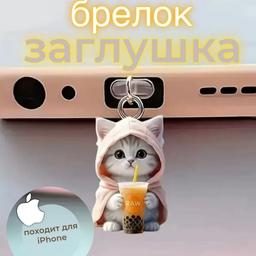 Пылезащитная заглушка Котик для порта зарядки мобильного телефона ,подходит на Apple (Серый котик в розовом худи)
