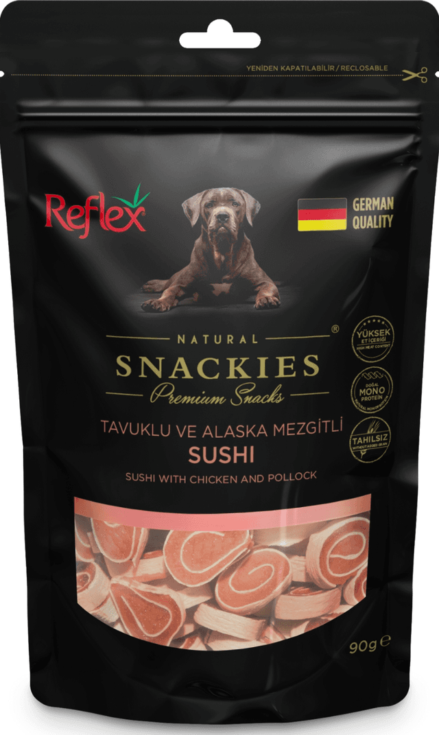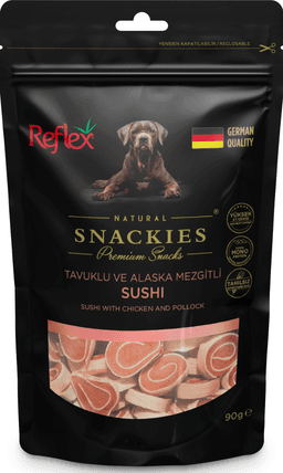 Reflex snackies лакомства для собак суши курица с минтаем 90гр