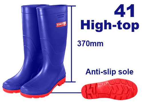 Резиновые сапоги EMTOP ERBTL041 (размер 41) Это надежная защитная обувь, предназначенная для работы в условиях повышенной влажности, на стройках, в садах или на производстве. Сапоги изготовлены из прочного ПВХ, который обеспечивает полную водонепроницаемость и комфорт при длительном использовании в сырой среде. Характеристики: Размер: 41; Материал: Высококачественный ПВХ (поливинилхлорид); Цвет: Черный (традиционный для серии ERBTL); Подошва: Глубокий протектор для защиты от скольжения; Особенности: 100% водонепроницаемость, устойчивость к износу и слабым химическим растворам.