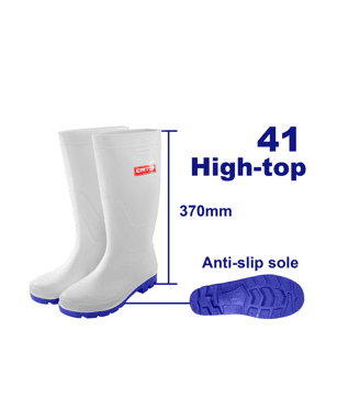 Резиновые сапоги EMTOP ERBTW041 (размер 41) Это специализированная защитная обувь, предназначенная для работы в стерильных или влажных условиях. Чаще всего данная модель (в белом цвете) применяется в пищевой промышленности, лабораториях или медицине. Сапоги обеспечивают отличную герметичность и устойчивость к скольжению на влажных поверхностях. Характеристики: Размер: 41; Материал: Высококачественный ПВХ (поливинилхлорид); Цвет: Белый; Подошва: Противоскользящая, устойчивая к животным жирам и чистящим средствам; Особенности: 100% водонепроницаемость, анатомическая форма для комфорта.