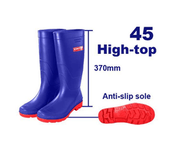Резиновые сапоги EMTOP ERBTL045 (размер 45) Это надежные защитные сапоги большого размера, предназначенные для интенсивного использования в условиях высокой влажности и загрязненности. Они широко применяются в строительстве, сельском хозяйстве и промышленности. Прочный ПВХ-материал обеспечивает долговечность и абсолютную защиту от проникновения воды. Характеристики: Размер: 45; Материал: Высококачественный ПВХ; Цвет: Черный; Подошва: Противоскользящая с глубоким протектором; Особенности: 100% водонепроницаемость, устойчивость к кислотам, щелочам и маслам.