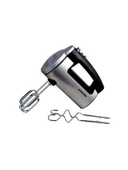 Вид: Ручной миксер. Мощность: 300 Вт. Эта мощность является «золотой серединой»: она выше, чем у бюджетных моделей, что позволяет уверенно работать не только с жидкостями, но и с более плотным тестом. Тип управления: Механический. Скорости: 5 режимов скорости для контроля процесса (от медленного перемешивания муки до интенсивного взбивания сливок). Функция Turbo: Есть кнопка для моментального ускорения до максимума. Материал: Прочный корпус серого цвета, устойчивый к загрязнениям и отпечаткам пальцев. Комплектация: Пара стальных венчиков (для воздушных масс). Пара стальных крюков (для замешивания теста). Особенности: Эргономичная форма ручки, кнопка фиксации и легкого отсоединения насадок.