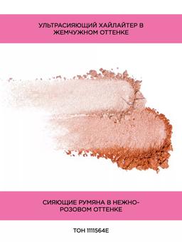 Характеристики Цвет: HIGHLIGHT BLING Объем: 10gr Описание Дуэт невесомого румянца, который мгновенно излучает сияние на щеках. В составе использована легендарная пудровая формула WnW с эффектом сияния, получившая награду Allure Best of Beauty Award-Winning. Два оттенка обеспечивают максимально естественный эффект стробинга. Хайлайтер создан с ультра-отражающими, микро-мелкими жемчужными пигментами, чтобы увеличить сияние кожи. Способ применения Наберите небольшое количество румян, улыбнитесь, это лучший способ найти на щеках правильные участки для нанесения румян. Слегка коснитесь зоны «яблок» на щеках и двигайтесь по направлению к уху, интенсивность цвета регулируйте самостоятельно.