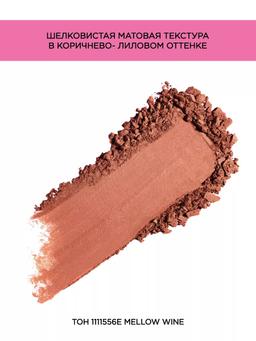 Характеристики Цвет: MELLOW WINE Объем: 6gr Описание Румяна, выделяющие скулы, придают румянец и освежает цвет лица. Новая улучшенная формула в самых востребованных престижных оттенках румян. Бархатистая формула с добавлением нейлона для шелковисто-гладкой текстуры обеспечивает идеальный баланс между прозрачным блеском и сияющим оттенком максимального цвета. Легкий и стойкий. Способ применения Наберите небольшое количество румян, улыбнитесь, это лучший способ найти на щеках правильные участки для нанесения румян. Слегка коснитесь зоны «яблок» на щеках и двигайтесь по направлению к ушам, интенсивность цвета регулируйте самостоятельно.