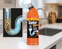 Гель Sanfor — мощное средство для экстренного устранения засоров в канализационных трубах. Благодаря густой структуре, он быстро проникает к очагу загрязнения даже через стоячую воду. Гель эффективно растворяет волосы, жир, остатки пищи и другие органические пробки. Помимо прочистки, Sanfor уничтожает неприятные запахи и бактерии, обеспечивая гигиену стоков. Подходит для работы с пластиковыми и металлическими трубами. Характеристики: Назначение: устранение и профилактика засоров. Форма выпуска: густой гель. Время действия: от 5 до 15 минут (при сильных засорах до 60 мин). Совместимость: подходит для пластиковых и металлических труб. Вес: 750 г.