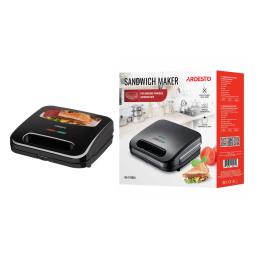 Ardesto SM-H110BSN — сэндвичмейкер, который позволяет готовить два сэндвича одновременно. Некоторые характеристики: мощность: 700 Вт; антипригарное покрытие; индикатор готовности; длина кабеля: 0,75 м; цвет корпуса: чёрный; вес: 1,2 кг; гарантийный срок: 1 год; размер (ШхВхГ): 26×11×26 см. Особенности: ручка с фиксатором для удобства хранения и переноски; прорезиненные ножки для устойчивости. Страна происхождения: Китай.