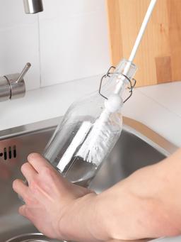 Белая щётка для бутылок — удобный и экономичный инструмент для мытья.