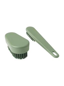 Набор чистящих щёток – 2 штуки, зелёного цвета. Подходят для мытья посуды, полок и других поверхностей. Прочные, с удобной ручкой, идеально для ежедневного использования.