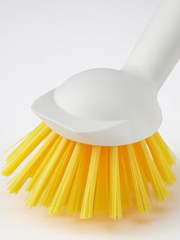 Эта жёлто-белая щётка для мытья посуды удобна в использовании. Прочная и гибкая ручка обеспечивает эффективную и лёгкую уборку.