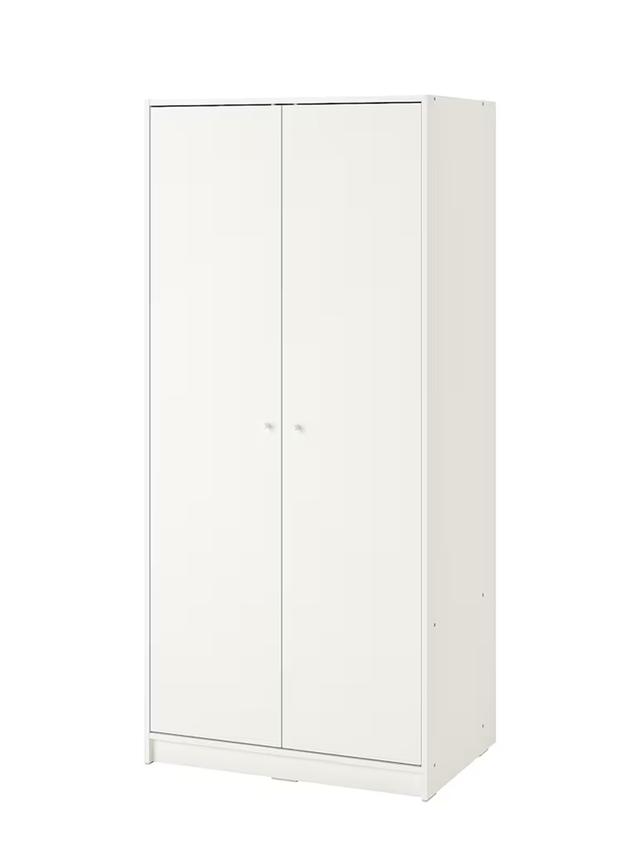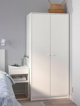 KLEPPSTAD – это простое и функциональное решение для хранения основной одежды. Он легко собирается. Внутри есть штанга и одна полка. Области Применения: Спальня, гостевая комната. Технические Характеристики Цвет: Белый Material: ДСП, Бумажная пленка. Размеры: Ширина: 79 см, Высота: 176 см. Особенности: 2 двери, быстрая сборка, штанга и полка.