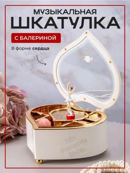Шкатулка музыкальная для украшений с балериной "Сердце"