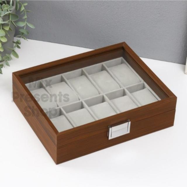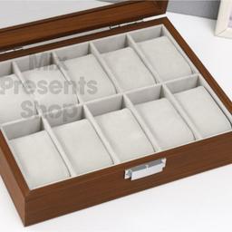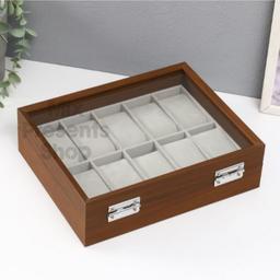 Шкатулка органайзер для часов (10 отделений) Элегантная шкатулка для часов и украшений с 10 отделениями практичное решение для организации и хранения аксессуаров, драгоценностей и бижутерии. Изысканный дизайн позволяет легко вписаться в любой интерьер и оформление дома или квартиры. Универсальная большая шкатулочка коричневого цвета станет оригинальным презентом и находкой как для мужчины, так и женщины, которые следят за своими вещами и любят порядок во всем. А также подчеркнет индивидуальность и хороший вкус. Сделана из качественного дерева. Отличная идея для подарка!