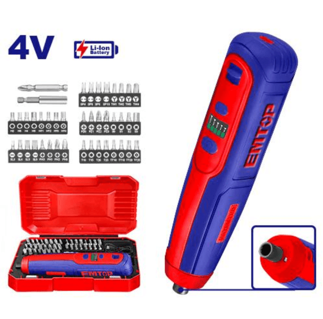 Напряжение: 4 В Шестигранный хвостовик: 1/4 дюйма Скорость холостого хода: 260 об/мин Максимальный крутящий момент: 5 Н·м Встроенная подсветка Индикатор уровня заряда В комплект входят: 40 бит Cr-V 25 мм + держатель, 1 бит Cr-V 50 мм + держатель, 1 соединитель, 1 кабель Mirco-USB Упаковано в пластиковую коробку