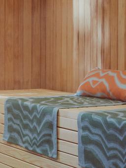 Полотенце для сидений размером 45x60 см в сине-зелёной расцветке. Идеально для сауны или ванной комнаты, хорошо впитывает влагу и легко стирается.