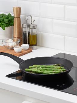 Сковорода IKEA HEMLAGAD диаметром 28 см — это надежный инструмент для ежедневного приготовления пищи, выполненный из алюминия, который обеспечивает быстрый и равномерный нагрев. Главной особенностью модели является прочное антипригарное покрытие Teflon® Select, позволяющее готовить с минимальным количеством масла и облегчающее процесс мытья. Эргономичная ручка из фенопласта не нагревается в процессе готовки, обеспечивая комфорт и безопасность. Сковорода универсальна и подходит для всех типов варочных панелей, включая индукционные, благодаря стальному диску в основании. Толстые стенки и дно предотвращают деформацию при высоких температурах. Чтобы сохранить свойства покрытия, рекомендуется использовать только деревянные или пластиковые лопатки и мыть изделие вручную. Общий вес составляет около 1 кг, что делает её легкой и удобной в маневрировании.