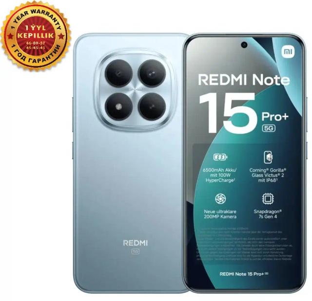 Xiaomi Redmi Note 15 Pro+ — это флагман среднего сегмента, сочетающий мощь процессора Snapdragon 7s Gen4 и революционную камеру на 200 Мп. Смартфон оснащен огромным аккумулятором на 6500 мАч с поддержкой сверхбыстрой зарядки 100 Вт. Яркий AMOLED-экран 120 Гц защищен самым прочным стеклом Gorilla Glass Victus 2, а поддержка 5G и eSIM делает его идеальным для современной связи. Ключевые характеристики: Экран: 6,83" AMOLED, 120 Гц, яркость 1200 нит, Gorilla Glass Victus 2. Процессор: Qualcomm Snapdragon 7s Gen4 (4 нм). Память: 12 ГБ ОЗУ / 512 ГБ ПЗУ. Камера: Основная 200 Мп (Samsung) с OIS (оптическая стабилизация), селфи-камера 32 Мп. Аккумулятор: 6500 мАч, быстрая зарядка 100 Вт, обратная зарядка. Связь: 5G, Wi-Fi 6, Bluetooth 5.4, NFC, eSIM. Звук: Стереодинамики Dolby Atmos.