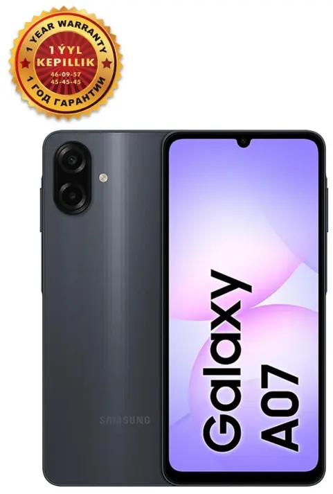 Смартфон Samsung Galaxy A07 6/128 GB, Чёрный — это надежное устройство начального уровня. Дисплей: Оснащен 6,7-дюймовым экраном с частотой обновления 90 Гц. Тип матрицы — PLS LCD, а разрешение — HD+ (720 x 1600 пикселей). Производительность: Работает на восьмиядерном процессоре MediaTek Helio G99. Память: Конфигурация включает 6 GB оперативной памяти и 128 GB встроенного хранилища. Также есть возможность расширения с помощью карты microSDXC. Камера: Основная камера имеет разрешение 50 МП, а фронтальная — 8 МП. Аккумулятор: Емкий литий-ионный аккумулятор на 5000 мАч обеспечивает длительное время работы. Дополнительно: Поддерживает две SIM-карты, имеет боковой сканер отпечатков пальцев и защиту от пыли и брызг воды стандарта IP54. Вес устройства составляет 184 г. Операционная система: Работает под управлением Android 15 с пользовательским интерфейсом One UI 7.