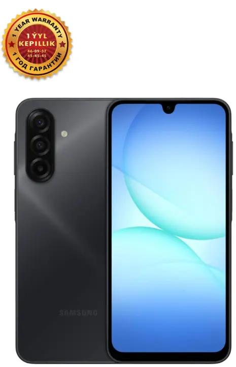 Смартфон Samsung Galaxy A17 6/128 GB, Чёрный — это надежное устройство с большим 6,7-дюймовым Super AMOLED-экраном, мощным аккумулятором на 5000 мАч и тройной камерой 50 Мп с оптической стабилизацией изображения. Экран: 6,7 дюйма Super AMOLED дисплей с разрешением FHD+ (1080 x 2340 пикселей) и частотой обновления 90 Гц. Процессор: Восьмиядерный процессор MediaTek Helio G99. Память: 6 GB оперативной памяти и 128 GB встроенной памяти, расширяемой с помощью карты памяти microSD объемом до 2 TB. Камеры: Основная камера: Тройная система камер: основной объектив на 50 Мп, сверхширокоугольный на 5 Мп, макрообъектив на 2 Мп. Фронтальная камера: 13 Мп. Батарея: Литий-полимерный аккумулятор емкостью 5000 мАч с поддержкой быстрой зарядки 25 Вт.