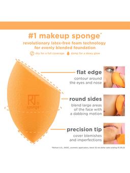 Описание Спонж для макияжа № 1* Лицо Для тональной основы и BB-крема Обеспечивают равномерное нанесение для безупречного макияжа Возьмите небольшое количество Нанесите Растушуйте Закругленный край для растушевки Плоский край для контурирования Заостренный конец для нанесения макияжа Используйте влажный или сухой спонж с жидкими, кремовыми или пудровыми тональными основами