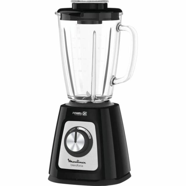 Стационарный блендер Moulinex LM437825 — простой в эксплуатации и при этом мощный кухонный помощник. С его помощью можно быстро приготовить, например, молочный коктейль, воздушное тесто для оладий или нежное фруктовое пюре. Некоторые особенности модели: Панель управления представлена эргономичным поворотным регулятором. Нужно вращать его в правую сторону, чтобы выбрать одну из пяти скоростей, и влево — для установки турборежима. Он предназначен для измельчения таких твёрдых ингредиентов, как орехи и лёд. Прибор поставляется со стеклянной чашей объёмом 1,75 л, которая одинаково подходит для горячего и холодного. Для удобства ёмкость снабжена надёжной ручкой, наглядной мерной шкалой и съёмной крышкой. Корпус сделан из высокомарочной нержавеющей стали. Лезвия ножей надолго останутся острыми, поскольку они изготовлены с использованием особой технологии Powelix.