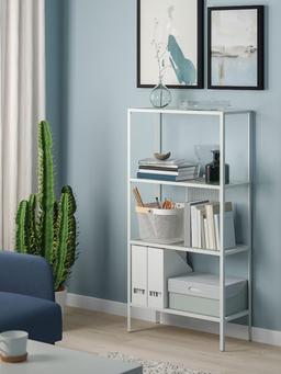 IKEA BAGGEBO — лёгкий и простой стеллаж, подходящий для хранения книг, декора и повседневных предметов. Металлическая конструкция обеспечивает прочность, а белый цвет гармонирует с любым интерьером. Размеры: Ширина: 60 см Глубина: 25 см Высота: 116 см