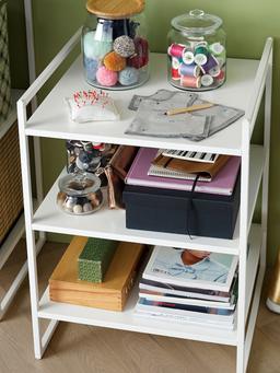 Эта белая полка идеально подходит для хранения одежды или домашних принадлежностей. Компактный размер позволяет использовать её даже в небольших помещениях. Можно дополнить колёсиками для мобильности. Размер: 50x51x70 см.