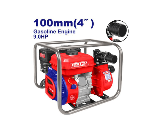 Диаметр всасывающего и нагнетательного отверстий: 100 мм, 4 дюйма. Максимальная производительность: 1500 л/мин. Максимальная высота подъема: 30 м. Максимальная высота всасывания: 8 м. Бензиновый двигатель мощностью 9,0 л.с. Рабочий объем: 270 куб.см. Топливный бак: 6,0 л Система запуска: ручной. Упаковано в картонную коробку