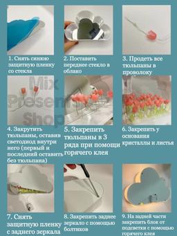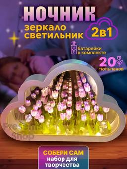Ночник светильник 3D "Облачко с тюльпанами" (сделай сам) (поставляется в разобранном виде) Ночник облачко с тюльпанами отличное интерьерное решение, которое привнесет в ваш дом атмосферу волшебства. Эта стильная новинка имеет удобную форму и компактные размеры. Светильник с тюльпанами идеально подойдет для создания романтической атмосферы во время свидания или вечеринки. Облачко с тюльпанами собери сам станет отличным подарком. Этот ночник отлично подходит для создания атмосферного освещения на вечеринках, романтических ужинах или для спокойного отдыха в вечернее время. Его эстетика и функциональность делают его идеальным выбором для тех, кто ценит стиль и комфорт, послужит элементом фотозоны на корпоративе или других тематических вечеринках. НАБОР ПОСТАВЛЯЕТСЯ В РАЗОБРАННОМ ВИДЕ!!! (Сделай сам!!! Все комплектующие в комплекте)