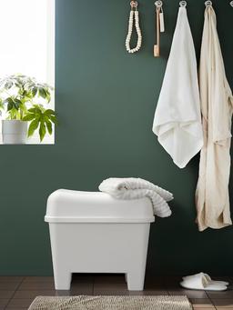 Табурет IKEA BURSJÖN с ящиком для хранения: Материал Пластик. Табурет, подходящий для использования в ванной или душевой. Особенность: Внутри табурета есть место для хранения моющих средств или банных принадлежностей. Устойчив к влаге. Цвет Белый.