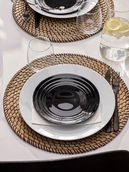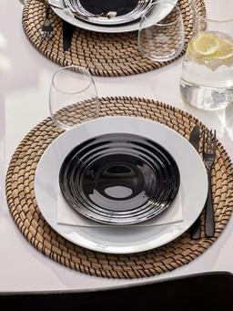 Тарелка чёрного цвета диаметром 19 см. Подходит для подачи блюд или закусок. Лаконичный и современный дизайн хорошо вписывается в любую столовую или кухню.