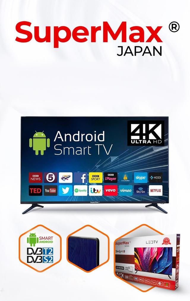 Основные характеристики Диагональ экрана: 50 дюймов Цвет корпуса: чёрный Бренд: Supermax Операционная система: Android TV Технология экрана: LED Особенности изображения Качество картинки: Превосходная детализация Широкие углы обзора Естественная цветопередача Технологии улучшения: Digital Noise Reduction Motion Compensation HDR поддержка Local Dimming Функциональные возможности Android TV Smart TV: Встроенный магазин приложений Google Play Голосовое управление Персонализированный интерфейс Мультимедиа: Поддержка всех популярных форматов Многоканальное аудио Встроенный браузер Подключение: HDMI порты (3 шт.) USB порты (2 шт.) Ethernet Wi-Fi 5.0 Bluetooth Удобство использования Интерфейс: Интуитивно понятное меню Голосовое управление Пульт ДУ с подсветкой Поддержка Google Assistant Звук: Стереодинамики Поддержка Dolby Digital Clear Audio+ Object Tracking Sound Преимущества модели Дизайн: Тонкий корпус Минималистичные рамки Универсальный чёрный цвет Производительность: Четкое изображение Насыщенные цвета Плавное воспроизведение Smart-функции: Неограниченный доступ к приложениям Регулярные обновления Интеграция с Google сервисами