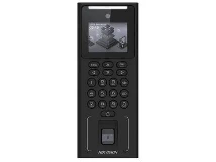 Терминал доступа с функцией распознавания лиц от Hikvision. Относится к серии Value продуктов для контроля доступа. / 2,4-дюймовый LCD-дисплей (320×240 пикселей); / 2 Мп объектив, угол обзора — 25° по горизонтали и 43° по вертикали; / встроенная подсветка белого света. / Распознавание лиц с использованием алгоритмов глубокого обучения. / Поддержка нескольких режимов аутентификации: по лицу, отпечаткам пальцев, картам, пин-кодам. / Питание: DC 12 В, потребляемая мощность — ≤ 6 Вт.
