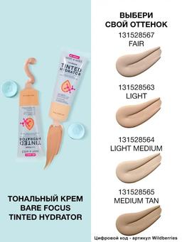 Характеристики Цвет: FAIR Объем: 27ml Описание Тональная Основа Bare Focus Tinted Hydrator - cекретное оружие для безупречной кожи. Содержит полезные уходовые ингредиенты, такие как растительный сквален и минералы, которые мгновенно увлажняют сухую кожу, сохраняя эффект в течение всего дня. Кремовая, воздушная формула не только обеспечивает естественное покрытие, но и делает кожу более свежей, помогая улучшить ее текстуру. Способ применения Нанести на лицо с помощью спонжа или кисти.