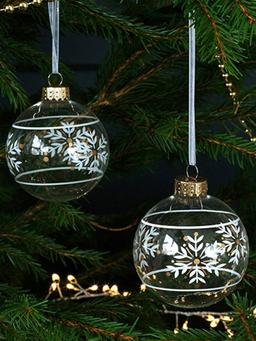 Украшение IKEA VINTER 2021 шар прозрачное стекло/белый 7 см 3шт