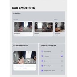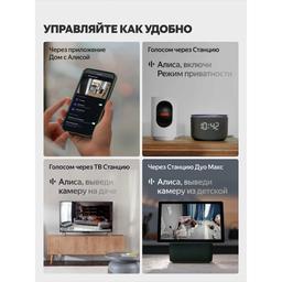 Умная IP-камера — первая умная камера Яндекса для домашнего видеонаблюдения. Она легко интегрируется в экосистему умного дома с Алисой и помогает присматривать за самым дорогим, даже когда вы далеко. Камера имеет широкий угол обзора 103º и поворотный механизм 350º — чтобы вы не упустили ни одной детали. Устанавливайте там, где нужно ваше внимание Установите умную камеру в прихожей, гостиной, детской, на кухне, даче или в любом другом помещении, где требуется дополнительное внимание. Можете прикрепить устройство к потолку или установить без крепления, например, на стол или полку. Управляйте как удобно · Через приложение Дом с Алисой: настраивайте камеру и просматривайте записи, где бы вы ни находились. · Голосом: просите Алису в Яндекс Станции включать или отключать камеру и выводите видео на ТВ Станции или Станции Дуо Макс: «Алиса, выведи камеру на даче». · С помощью сценариев: создавайте удобные сценарии с другими умными устройствами в приложении Дом с Алисой. Например, когда вы пойдёте ночью на кухню, камера заметит движение и в комнате включится умная лампочка. Выбирайте, как снимать Умная камера активирует запись, когда фиксирует звук или замечает движение, может поворачиваться за человеком или снимать только конкретную зону, а в тёмное время суток переходит на ночное видение. Выбирайте режим и параметры съёмки в приложении дом с Алисой. Смотрите как удобно Запись с камеры вы можете смотреть в приложении Дом с Алисой, а онлайн- трансляцию — в приложении и на экранах Станции Дуо Макс и ТВ Станции. Поделитесь доступом к видеотрансляции и к архиву в приложении с тремя членами семьи. А чтобы было проще находить нужные фрагменты записи, используйте фильтр: по датам, по обнаружению любого движения или человека. Разметка событий на ленте записи поможет быстрее ориентироваться в видео. Получайте уведомления Чтобы вы могли вовремя реагировать на ситуацию дома, умная камера пришлёт push- уведомление, SMS или позвонит на телефон, если заметит активность. Включайте режим приватности* Умная IP-камера не нарушает приватность личной жизни. Вы можете в любой момент включить режим приватности, в котором камера прекратит съёмку и отключит микрофон. Это можно сделать в приложении Дом с Алисой, голосом через Яндекс Станцию*: «Алиса, включи режим приватности», или нажав на специальную кнопку Mute на самой камере. Сохраняйте видео в облаке Видеостриминг с камеры доступен сразу после её подключения. Для локальной записи потребуется SD-карта. А для максимально безопасного хранения и дополнительных преимуществ можно оформить подписку Видео в облаке. Бренд : Яндекс Цвет товара : серый Стандарт видеокамеры : IP Тип : камера видеонаблюдения Изображение : цветное Разрешение : 2560x1440 Частота кадров при макс. разрешении : 20 кадров/с Тип матрицы : CMOS Размер матрицы : 1/3" Мин. фокусное расстояние : 5.85 мм Макс. угол обзора : 103° Функции и особенности : встроенный микрофон, ночной режим, слот для карт памяти Поддержка стандартов : 802.11g, 802.11n, Wi-Fi 5 ГГц Сетевые протоколы : Wi-Fi Поддержка видеокодеков : H.264 Макс. угол поворота : 350° Питание : от адаптера Напряжение питания : 5 В Потребляемый ток : 1500 мА Установка : настольная, потолочная Степень защита (IP) : IP20 Размеры (ШxГxВ) : 70x70x118 мм Вес : 0.22 кг Экосистема Умного дома : Умный дом Яндекса Работает в системе Умный дом : да Протокол связи Умного 