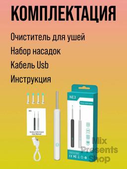 Умная ушная палочка позволяет вам увидеть, что происходит внутри уха. Устройство подключается к смартфону, планшету по беспроводному каналу и передает картинку в режиме реального времени. Обеспечивается стабильная и плавная передачу изображения. Отоскоп обеспечивает качество изображения высокой четкости. Четыре сменные ушные ложки из пищевого силикона мягкие, приятные для кожи и не травмируют слуховой проход. Они подходят для всей семьи, чтобы избежать перекрестного заражения. Очиститель для ушей работает от перезаряжаемого аккумулятора. Размеры насадок очень маленькие. Поэтому ушную палочку можно использовать даже для очищения ушей малышей. Характеристики: Материал корпуса: пластик АБС Материал насадок: силикон Питание: от аккумулятора Мощность устройства: 0,5 Вт Время подзарядки: 1 час Время работы автономно: 35 мин Емкость аккумуляторной батареи: 130 мАч Защита от перезарядки Индикация заряда Подсветка светодиодная Класс влагозащиты: IPX5 Разрешение камеры: 1080P Объектив: 3,5 мм Комплектация: очиститель для ушей, набор насадок, кабель usb,