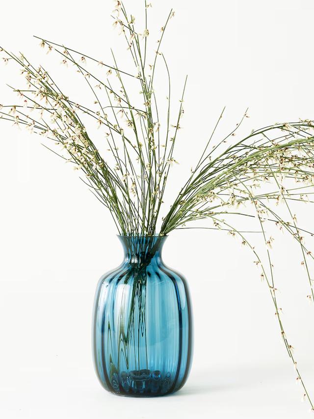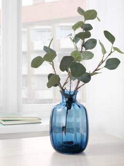 Эта голубая ваза высотой 21 см — стеклянный декоративный элемент для вашего дома. Современный и элегантный дизайн.