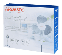 Вентилятор ARDESTO FN-1608CW — напольный прибор белого цвета с механическим управлением и опорой в виде крестовины. Некоторые характеристики: мощность: 45 Вт; диаметр лопастей: 40 см; количество лопастей: 3; уровень шума: 55 дБ; воздушный поток: 4560 м³/ч; угол наклона: 90°; количество скоростей: 3; тип питания: от сети; защитная решётка; устойчивое основание; вес: 2,4 кг; размеры: ширина — 52 см, высота — 125 см. Материалы: корпус — металл, пластик. Страна-производитель: Китай. Гарантия: 12 месяцев.
