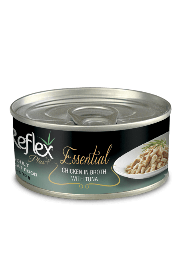 Влажный корм для кошек Консервированный корм для взрослых кошек Reflex Plus Essential с тунцом и курицей