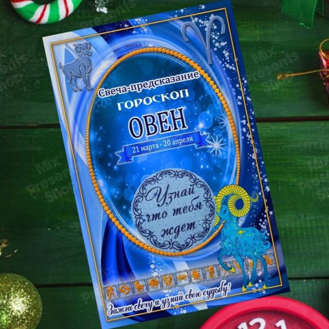 Порадуйте родных и близких оригинальным сувениром: преподнесите волшебную свечу с предсказанием на новый год! (Гороскоп) Через 15-20 минут горения свечи проявляется предсказание, которое будет видно сквозь растаявший воск. Шуточное и веселое предсказание обязательно сбудется и порадует вас! Размер свечи: 3.5 × 3.5 × 1см Состав: воск. Свечу волшебную скорее зажигай - тебе она подарит предсказание. С любовью этот Новый год встречай, пусть сбудутся любые ожидания!
