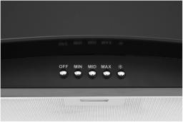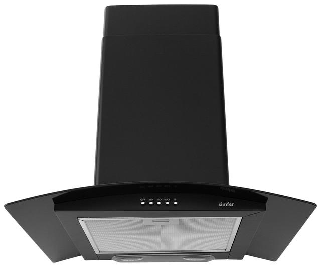 Каминная (купольная) пристенная вытяжка в современном дизайне. Корпус выполнен из комбинации металла и стекла (чаще всего черного цвета), что придает ей стильный вид. Предназначена для эффективной очистки воздуха на кухне от запахов, пара и дыма. Оснащена металлическим жировым фильтром, который легко снимается и моется.