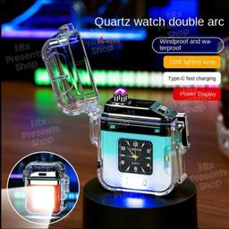 Зажигалка плазменная водонепроницаемая (с часами и фонариком)