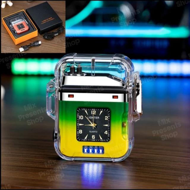 Зажигалка плазменная водонепроницаемая с часами и фонариком. Зарядка: USB (кабель в комплекте) Электронная плазменнаяводонепроницаемая зажигалка с двойной дугой, прозрачная, заряжается от USB, с фонариком и часами (беспламенная ветрозащитная). Эта инновационная Зажигалка идеально подходит для любителей активного отдыха и кемпинга благодаря водонепроницаемой конструкции, которая позволяет использовать ее даже под дождем. Сделана с прозрачным корпусом, поэтому вы можете четко видеть плазму во время ее воспламенения. Технология двойной дуги ARC обеспечивает мощное пламя, которое может легко зажечь любую сигарету или свечу. Эта Зажигалка также используется как часы и USB-фонарик, что делает ее удобным инструментом, который можно всегда иметь при себе. Благодаря встроенной батарее вы можете использовать эту зажигалку в любом месте. Цвета: Микс (можете выбрать цвет при заказе) (уточняйте наличие цветов)