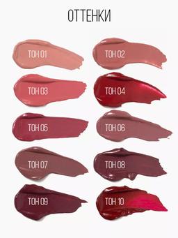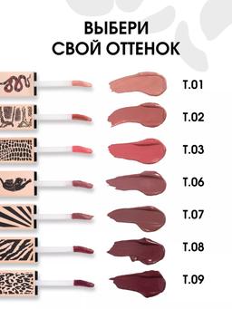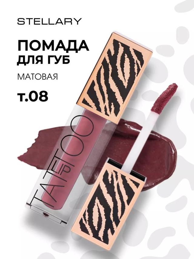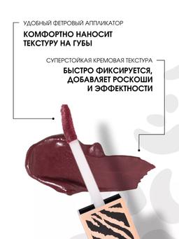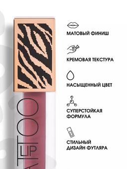 Характеристики Цвет: №08 GRAPE JUISE Объем: 4.5ml Описание С ней вы создадите тот самый трендовый образ с объемными бархатными губами. Кремовая текстура отлично наносится мягким фетровым аппликатором, добавляя макияжу роскоши и эффектности. Помада дарит долгий матовый финиш без сухости, быстро фиксируется и придает губам насыщенный цвет с первого слоя. В коллекции 10 оттенков: от нюдового до насыщенного ягодного. У каждого тона индивидуальный дизайн колпачка с анималистичным принтом. С LIP TATTOO наслаждайтесь своим образом с роскошными губами весь день! Способ применения Наносите пушистым аппликатором на губы. Чтобы добавить объем, сначала выделите контур карандашом, немного выходя за края.