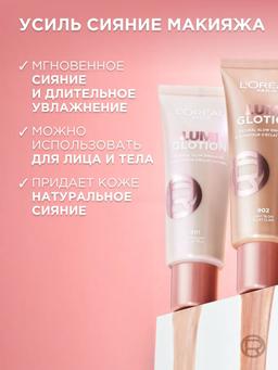 Характеристики Цвет: №901 Объем: 40ml Описание Жидкий хайлайтер для лица и тела Lumi Glotion от L'oreal Paris обеспечивает натуральный сияющий финиш. Мультифункциональный продует для сияния кожи: подходит для использования для кожи лица и тела, как самостоятельный продукт, как усилитель сияния вместе с тональным кремом. Способ применения Используйте отдельно или наносите под тональный крем или поверх него. Чтобы использовать его в качестве хайлайтера, нанесите хайлайтер пальцами, спонжем или кистью на все лицо или выбранные места, которые хотите осветить, например, верхушки скул. В качестве контура – на контуры щек нанесите оттенок темнее тона вашей кожи.