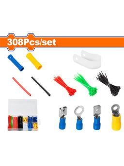 308 sany elektrik birleşdirijiler toplumy Materialy: PA+PE+PVC+latun Klemmalar: 16 sany RV5.5-3.5 25 sany RV2-5S 14 sany RV2-6 20 sany BV2 12 sany BV5.5 22 sany MDD2-250 22 sany FDD2-250 Termogysylýan turba: 10 sany 100 mm gyzyl 10 sany 100 mm gara Kabelleri daňmak üçin jynkyrlar (homut): 50 sany 2,4x100 mm gara 50 sany 2,4x100 mm gyzyl 50 sany 2,4x100 mm ýaşyl R-görnüşli gysgyç: 7 sany Plastik gutuda gaplanan