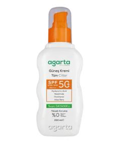 Agarta ähli deri görnüşleri üçin ýokary goragly tebigy güneşe garşy krem SPF 50, 200 ml