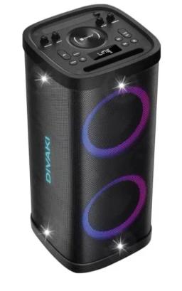 DIVAKI DT-R800B akustiki ulgamy — bu sazynyň ähli çuňlugyny we güýjüni duýmak isleýänler üçin döredilen ýokary öndürijilikli göçme kalonkadyr. Uly häsiýetnamalary we döwrebap funksiýalary arkaly, ol islendik çäräniň merkezine öwrülip, professional seslenmäni we ýagty atmosferany üpjün eder. Partlaýjy kuwwat: Ýokary çykyş güýji hili ýitirmezden hatda uly otaglary we açyk meýdançalary hem seslendirmäge mümkinçilik berýär. Çuň bas: Dinamikalaryň ýörite gurluşy her bir aýdymy sözüň doly manysynda janlandyrýan baý pes ýygylyklary üpjün edýär. Simsiz erkinlik: Döwrebap Bluetooth moduly smartfonyňyz ýa-da planşetiňiz bilen uly aralykda durnukly baglanyşygy kepillendirýär. Karaoke tertibi: Mikrofonlary birikdirip bolmagy bu kalonkany wokal çykyşlary we baýramçylyklar üçin kämil saýlawa öwürýär. Uzak awtonomlyk: Göwrümli akkumulýator rozetka gözlemezden sagatlap saz diňlemäge mümkinçilik berýär. Yşyk şousy: Gurnalan dinamiki yşyklandyryş sazyň ritmine görä wizual utgaşmany döredip, islendik ýeri tans meýdançasyna öwürýär.